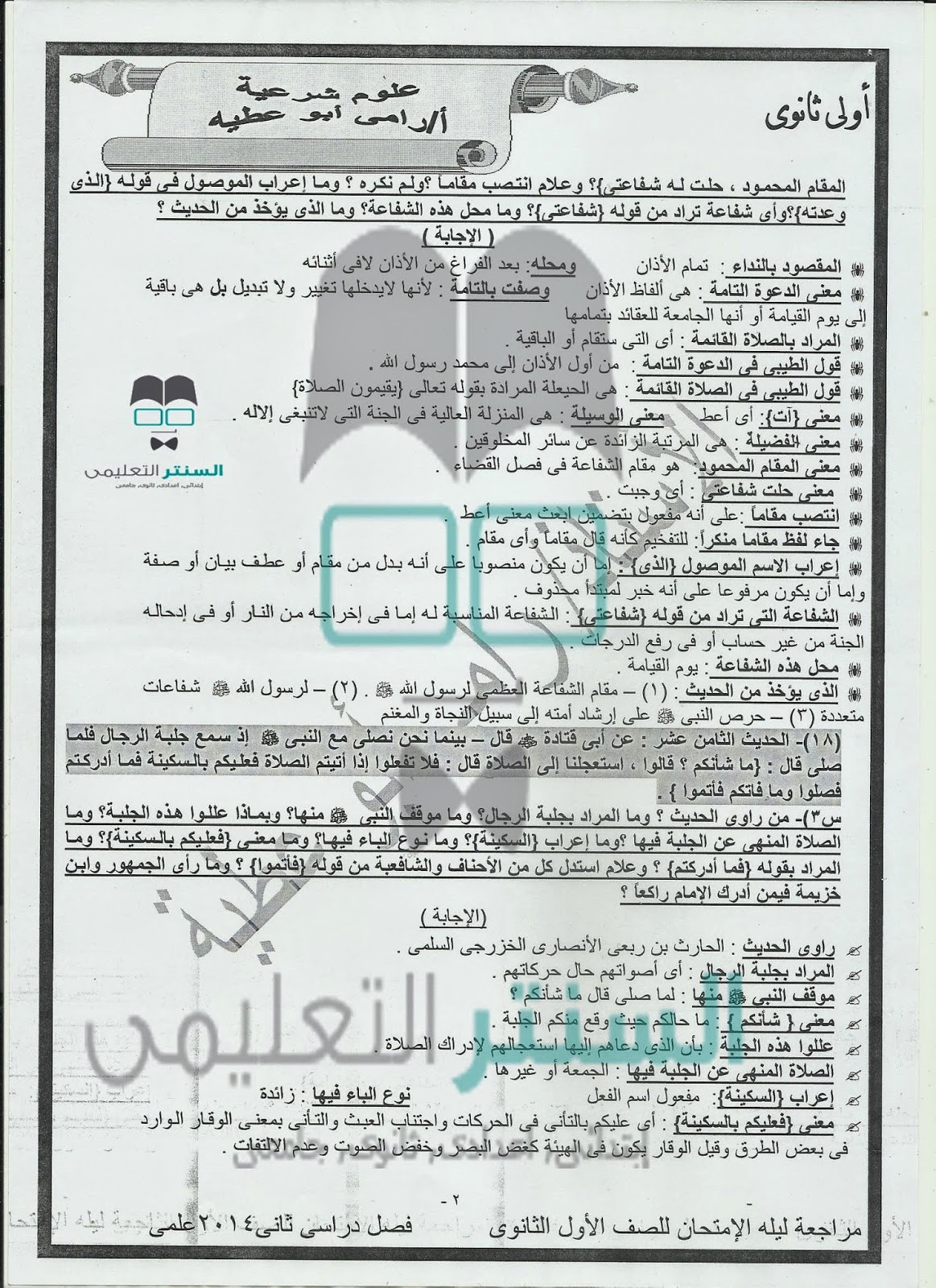 امتحانات الفصل الدراسى الثانى من محافظات مصر المختلفة وبدون تحميل